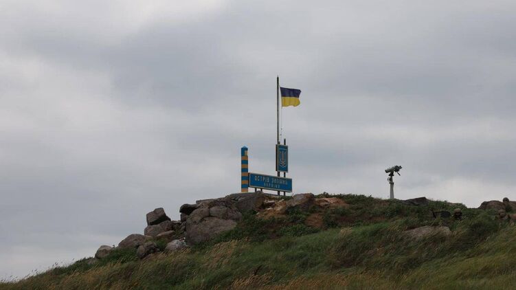"На Змеином подняли украинский флаг", - сказано в подписи к фото.
