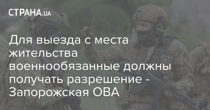 Для выезда с места жительства военнообязанные должны теперь получать разрешение. Такое сообщение появилось на сайте Запорожской ОВА.