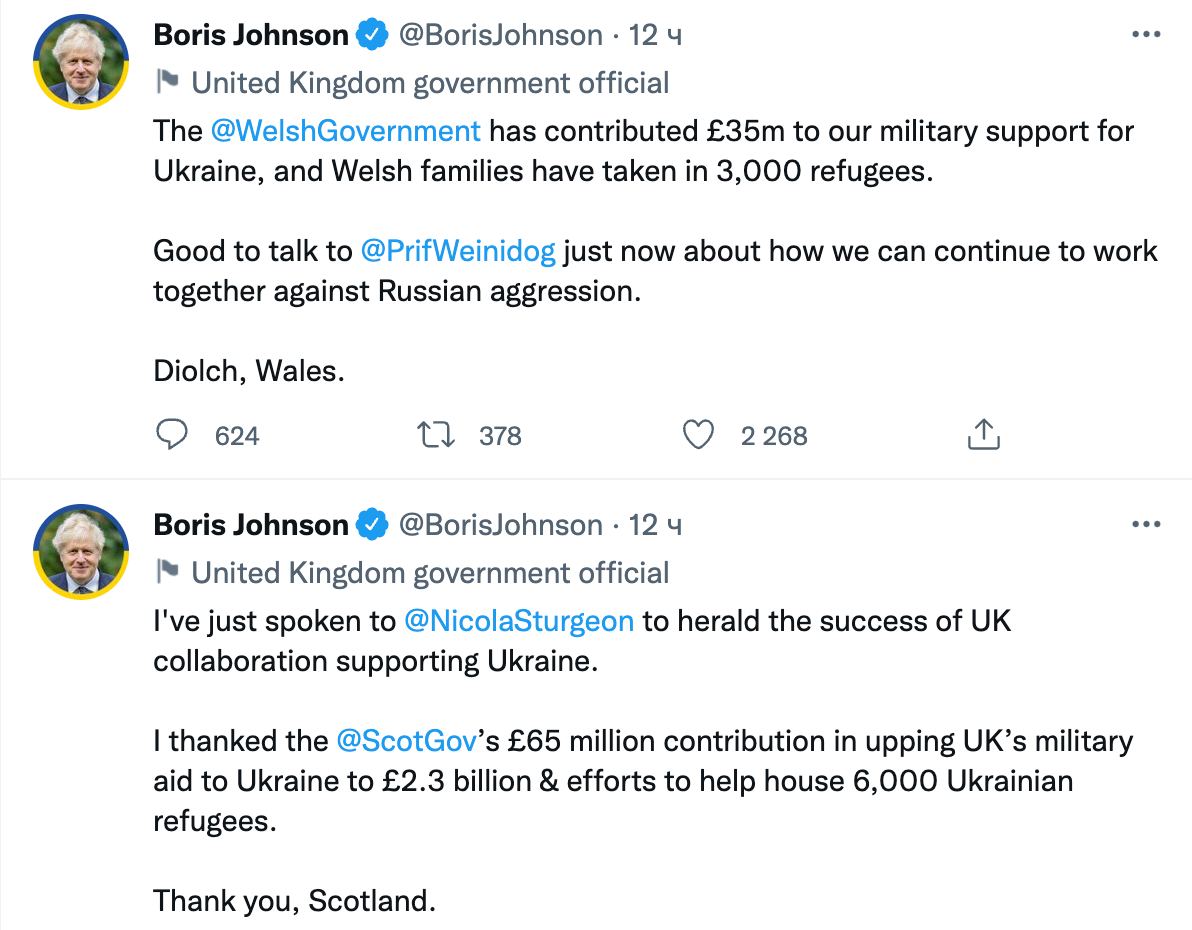 Шотландия и Уэльс на двоих выделили 100 миллионов фунтов (121 млн долларов) на военную поддержку Украины.