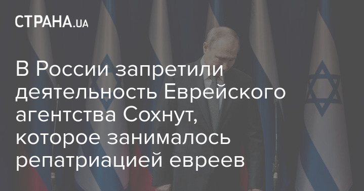 Россия предписала Еврейскому агентству (Сохнут) прекратить свою деятельность в стране.