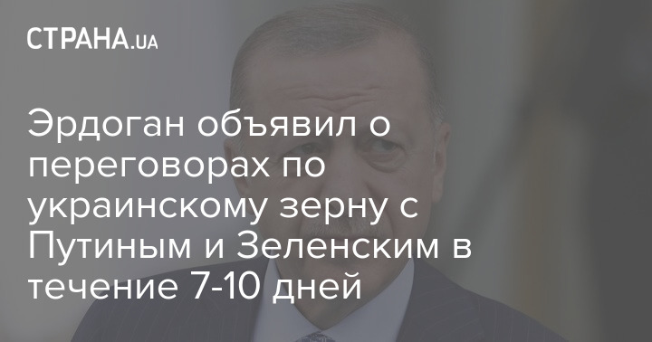 Президент Турции Реджеп Тайип Эрдоган рассчитывает на результативность переговоров по зерновому вопросу с российским коллегой Владимиром Путиным и украинским главой Владимиром Зеленским. Турецкий лидер подчеркнул, что переговоры могут начаться в течение семи-десяти дней.