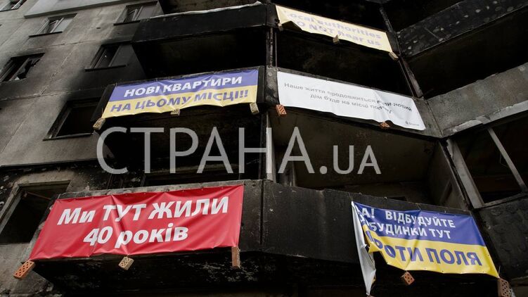 В Бородянке жители разбомбленных многоквартирных домов требуют построить новое жилье на месте разрушенного, а не где-то в другом месте. Владельцы квартир в домах, которые были разрушены в ходе боевых действий, вывесили из своих окон плакаты с надписями: "Новые квартиры на этом месте", "Мы здесь жили 40 лет".