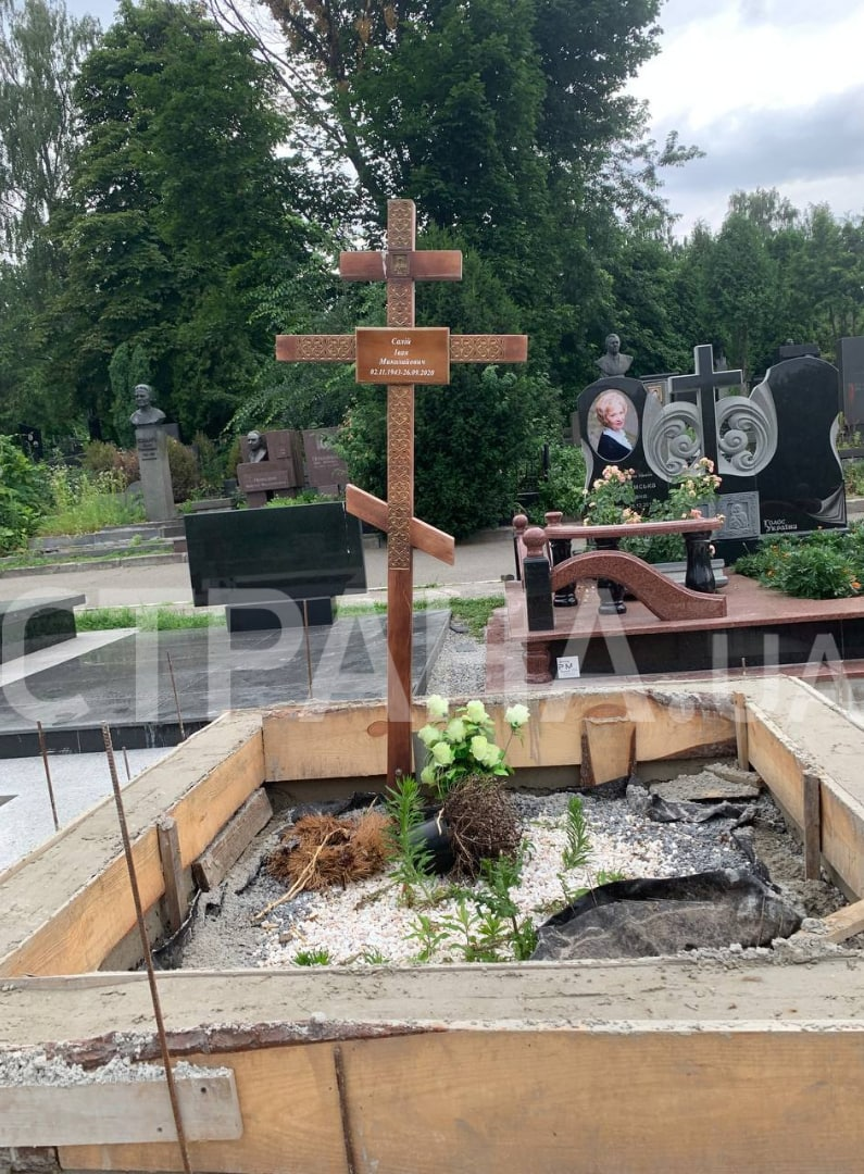На могиле экс-премьера Ефима Звягильского на Байковом кладбище появился памятник с изображением шахты. Фото