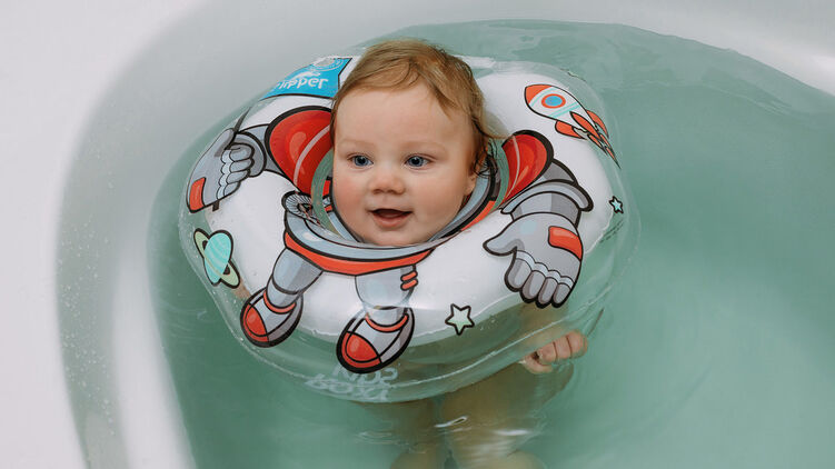 Плавательный круг на шее может привести к травмам у ребенка. Фото: roxy-kids.ru