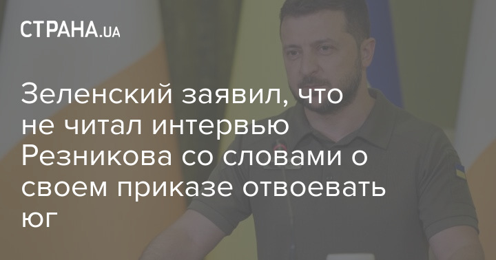 Президент Украины Владимир Зеленский не читал интервью министра обороны Алексея Резникова, где тот сообщил о приказе главы государства отвоевать юг Украины.
