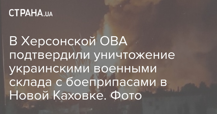 В Херсонской ОВА подтвердили уничтожение украинскими военными склада с боеприпасами в Новой Каховке. Фото