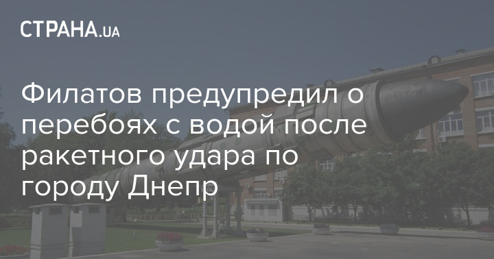 Мэр Днепра Борис Филатов сообщил, что в связи с ракетными ударами перебои с водой могут быть в районе улицы Рабочей и Южного машиностроительного завода.