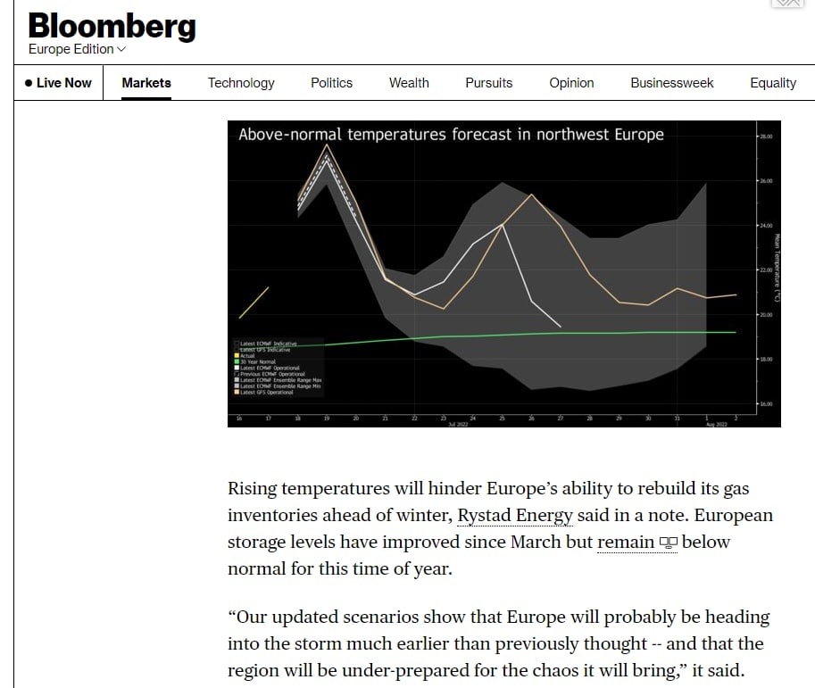 Из-за анормальной жары Европа не сможет восстановить запасы газа в преддверии зимы.