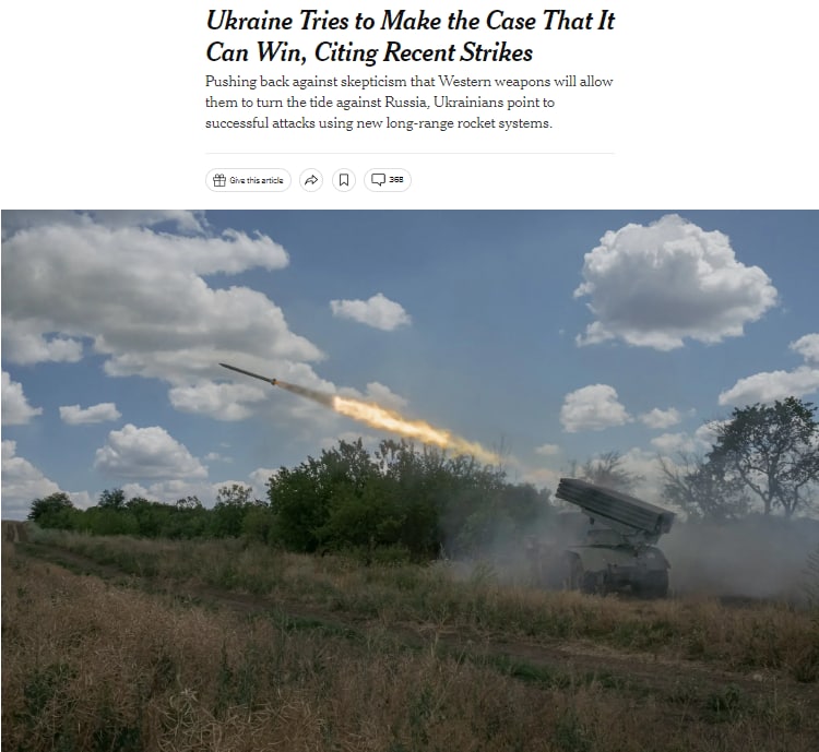 08:31 Газета The New York Times пишет, что недавние успешные удары установок Himars по российским складам с боеприпасами - это попытка Киева продемонстрировать Западу эффективность ВСУ и убедить нарастить военную поддержку.