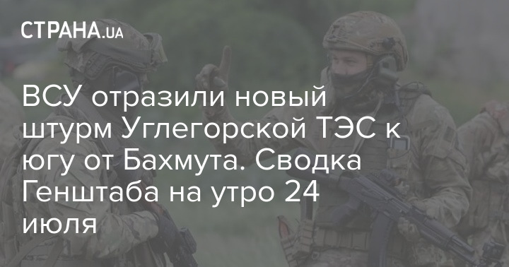 Генеральный штаб Вооруженных Сил Украины сообщает о новом штурме Углегорской ТЭС южнее Бахмута. Об этом говорится в свежей сводке с фронта, опубликованной на Facebook ведомства утром 24 июля.