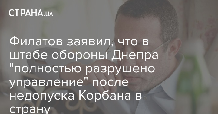 Мэр Днепра Борис Филатов говорит, что в работе штаба обороны города возникло много проблем после того, как у его главы Геннадия Корбана отобрали паспорт и не пустили в Украину.