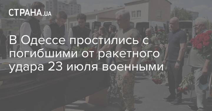 В Одессе простились с военнослужащими, погибшими от ракетного удара 23 июля по территории порта.
