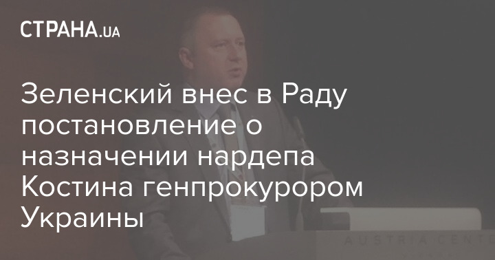 Президент Украины Владимир Зеленский 27 июля внес в Раду проект постановления о назначении главы правового комитета, нардепа "Слуги народа" Андрея Костина на должность генерального прокурора.