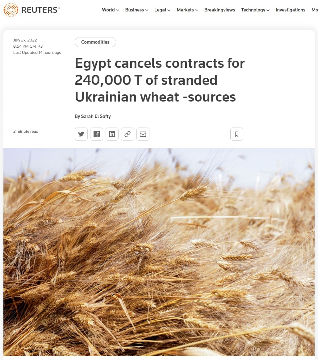На встрече с президентом Ливана посол Украины Игорь Осташ «обратил внимание президента Республики на то, что 27 июля 2022 года в морской порт Триполи зашло сирийское судно с ячменем, вывезенным с оккупированных территорий в порту Феодосия».