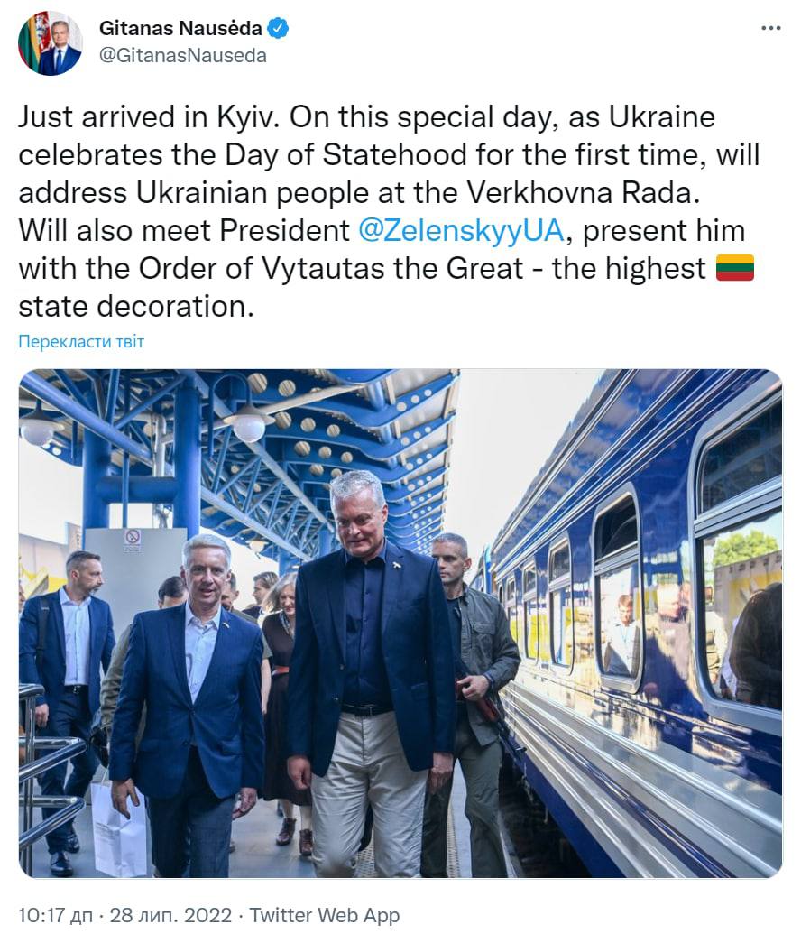 1. "Сегодня мы впервые отметили День украинской государственности. В ВР на торжественном заседании я вручил награды героям, а в Мариинском дворце вручил украинские паспорта юным гражданам. Поблагодарил президента Литвы, который прибыл в Киев".