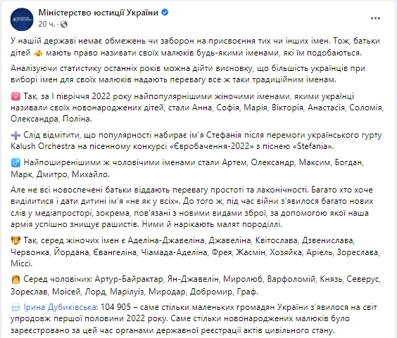 Некоторые украинцы дают своим малышам необычные имена. Фото: facebook.com/minjust.official