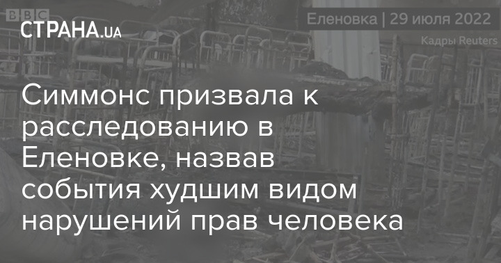 Симмонс призвала к расследованию в Еленовке, назвав события худшим видом нарушений прав человека