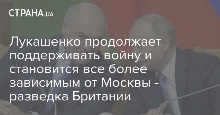 Лукашенко продолжает поддерживать войну и становится все более зависимым от Москвы - разведка Британии