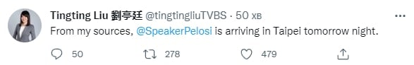 11:13 Нэнси Пелоси 2 августа будет в столице Тайваня Тайбэе, сообщила журналистка тайваньского государственного СМИ.