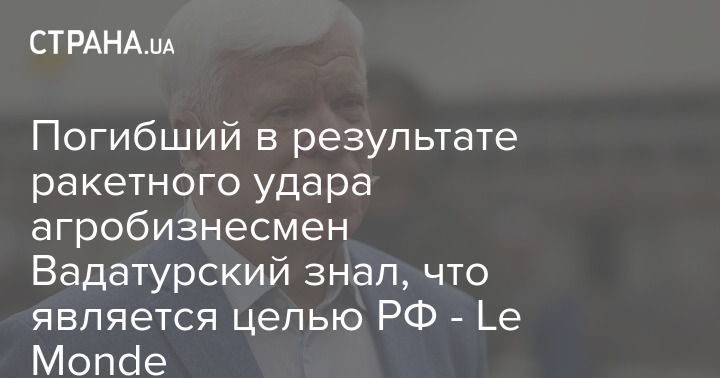 Погибший в результате ракетного удара агробизнесмен Вадатурский знал, что является целью РФ - Le Monde