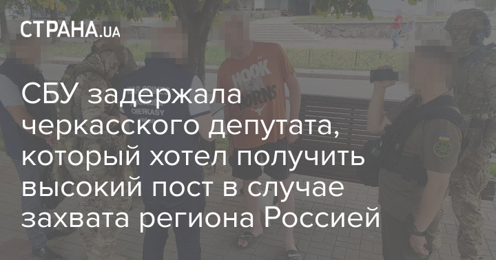 СБУ задержала депутата Черкасского горсовета. Он рассчитывал получить власть в Черкасской области в случае ее захвата войсками РФ.