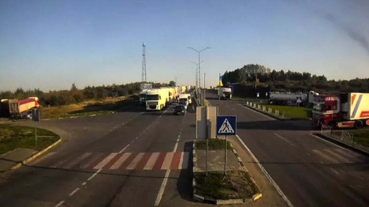 На Львовщине водители грузовиков перекрыли дорогу, протестуя против очередей на пунктах пропуска в Польшу