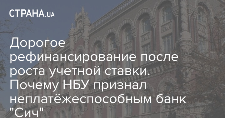 Дорогое рефинансирование после роста учетной ставки. Почему НБУ признал неплатёжеспособным банк "Сич"