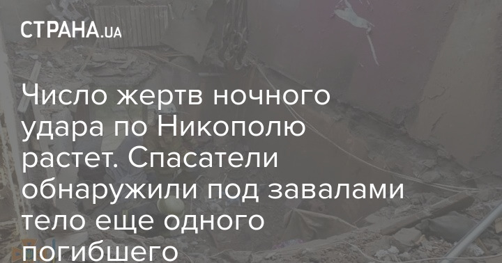 Число жертв ночного удара по Никополю растет. Спасатели обнаружили под завалами тело еще одного погибшего