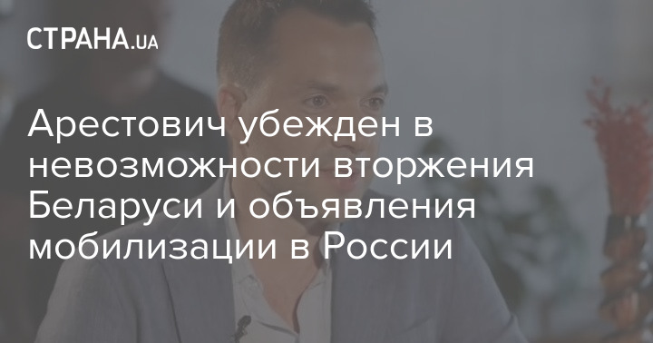 Советник главы Офиса президента Алексей Арестович высказал убежденность, что удара из Беларуси по Украине не будет и что в Российской Федерации не будет объявляться мобилизация.