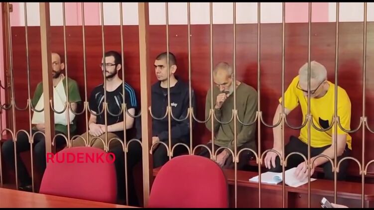 Российские Телеграм-каналы публикуют видео, на котором гражданин Швеции Матиас Густавссон, житель Хорватии Векослав Пребег, а также граждане Великобритании Джон Хардинг, Эндрю Хилл и Дилан Хили сидят на скамье подсудимых за решеткой.