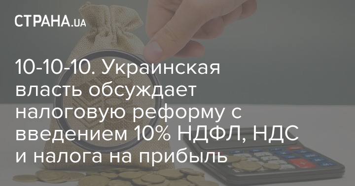 В украинской власти обсуждают проект такой налоговой реформы, которая предполагает введение 10%-ного налога на прибыль, 10%-ной ставки налога на доходы физических лиц (НДФЛ) и 10%-го налога на добавленную стоимость (НДС).