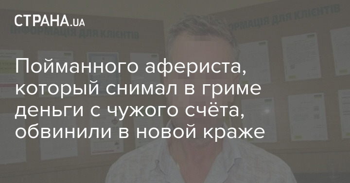 Загримированный мошенник, которого разоблачили при попытке снять 23 млн гривен в одном из банков Киева, получил подозрение в еще одном эпизоде ​​незаконного снятия 1,7 млн ​​гривен с банковского счета, хозяин которого выехал из Украины.