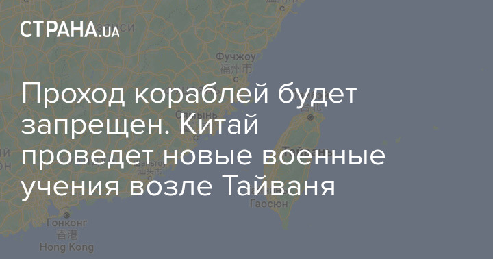 Проход кораблей будет запрещен. Китай проведет новые военные учения возле Тайваня