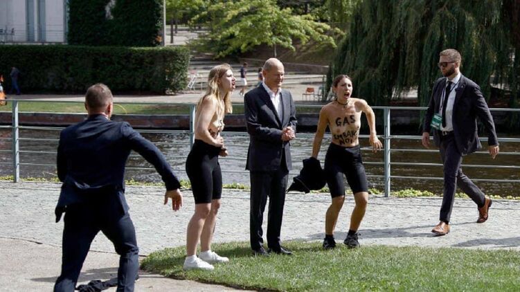 Сегодня к канцлеру Германии Шольцу подбежали неравнодушные к текущей повестки дня девушки и обнажились, потребовав отказа от закупок газа в России.