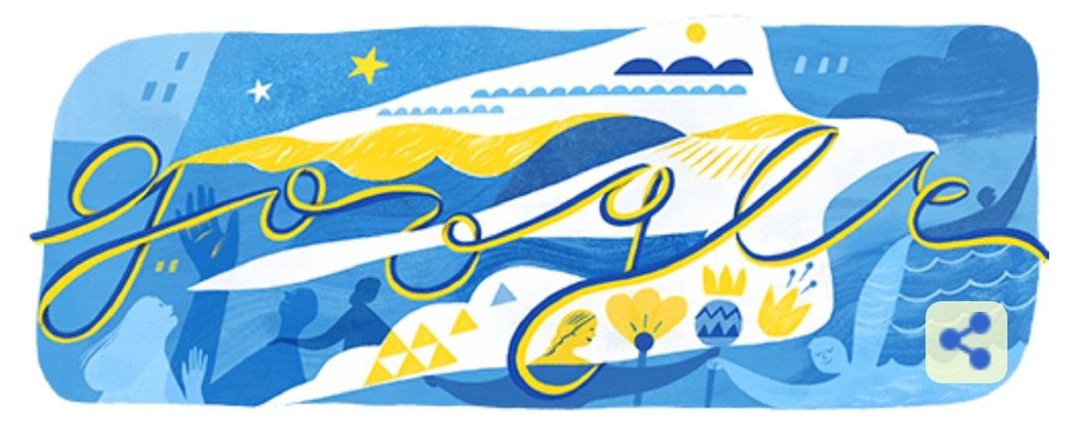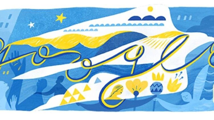 Компания Google выпустила свой новый дудл ко Дню независимости Украины. Автором рисунка в сине-желтых тонах стала харьковская художница Ольга Штонда.
