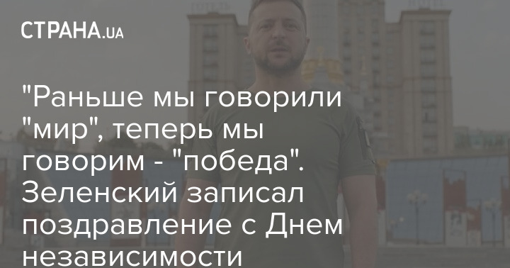 "Раньше мы говорили "мир", теперь мы говорим - "победа". Зеленский записал поздравление с Днем независимости