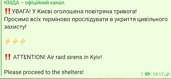 Тем временем в Украине воздушная тревога объявлена по всей стране, кроме западных областей и неконтролируемых территорий.