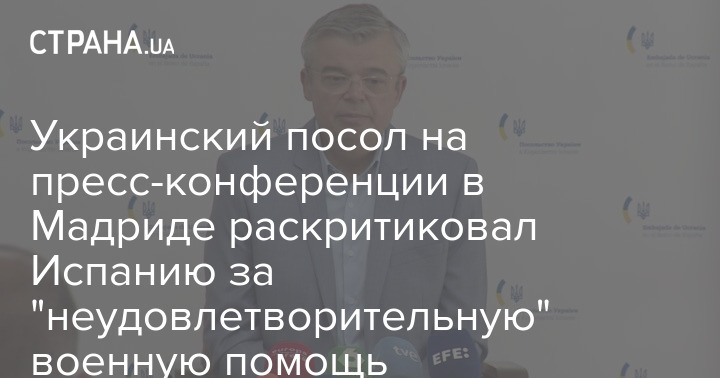 Украинский дипломат собрал в Мадриде пресс-конференцию, на которой высказался о помощи Испании. Скриншот из видео