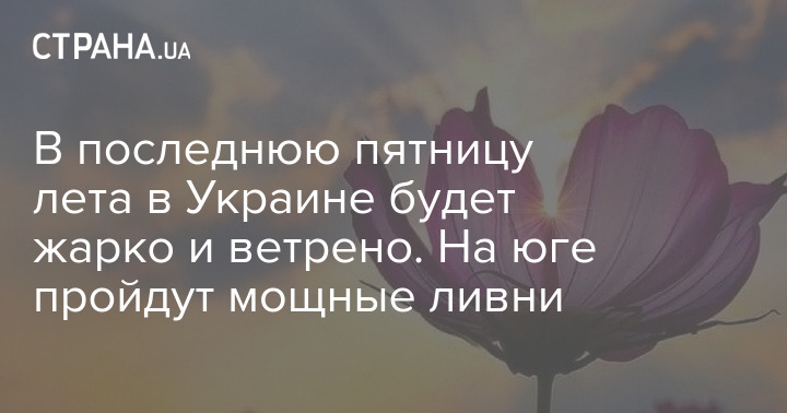 В последнюю пятницу лета в Украине будет жарко и ветрено. На юге пройдут мощные ливни