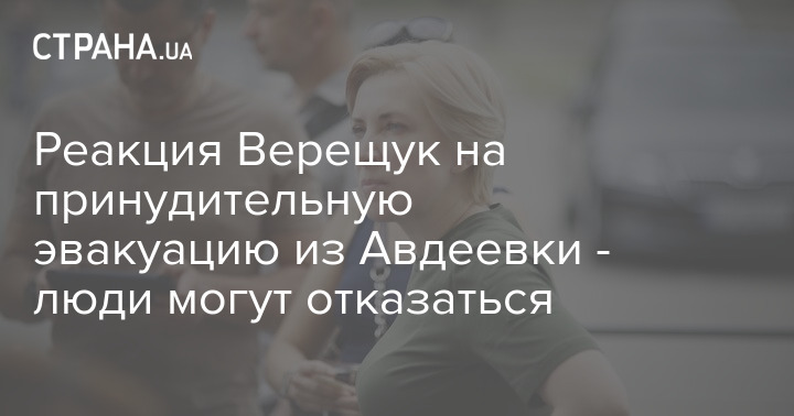 Вице-премьер - глава Минреинтеграции Украины Ирина Верещук в комментарии "Стране" отреагировала на предложение главы военно-гражданской администрации Виталия Барабаша о проведении принудительной эвакуации из Авдеевки, откуда не хотят уезжать более 2 тысяч жителей.
