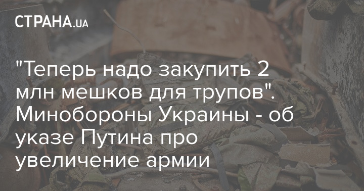 "Они еще даже не начинали... Россия планирует довести численность личного состава вооруженных сил до 2 млн+. Для выполнения указа своего президента минобороны России теперь необходимо закупить 2 миллиона мешков для трупов", - сообщили в Минобороны Украины.