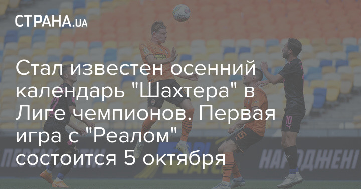 Стал известен осенний календарь "Шахтера" в Лиге чемпионов. Первая игра с "Реалом" состоится 5 октября