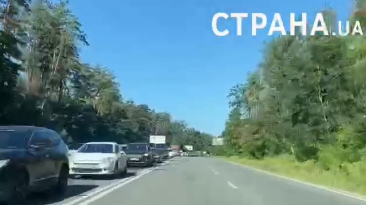 Пробка образовалась из-за блокпоста, который находится на въезде в Киев. Тянучка из автомобилей, которые ожидают возможности проезда, растянулась на несколько километров.
