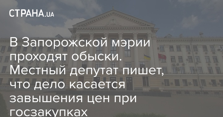 В Запорожской мэрии проходят обыски. Местный депутат пишет, что дело касается завышения цен при госзакупках
