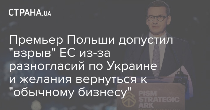 Премьер-министр Польши Матеуш Моравецкий заявил, что есть возможность внутреннего "взрыва" в Евросоюзе из-за раскола между странами, которые желают мира, и теми, кто хочет победы Украины.