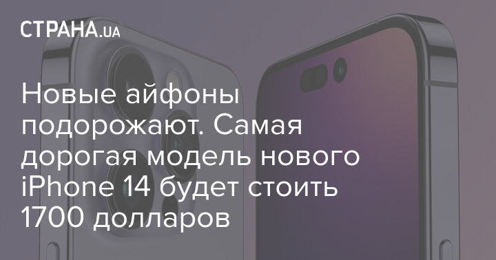 Новые айфоны подорожают. Самая дорогая модель нового iPhone 14 будет стоить 1700 долларов