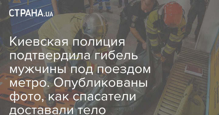 ГосЧС публикует фото, как спасатели доставали тело погибшего из-под поезда метро.