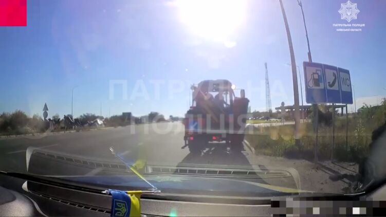 На трассе под Киевом полицейские поймали пьяного тракториста, который ехал без номерных знаков