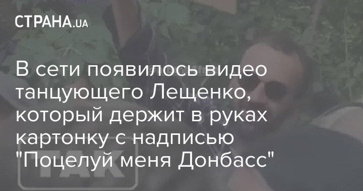 Телеграм-каналы публикуют видео, где Сергей Лещенко, один из советников Офиса президента и член Набсовета Укрзализныци, танцует с картонкой с надписью "Kiss me Donbass" (с англ. Поцелуй меня Донбасс - Ред.) на каком-то уличном фестивале.