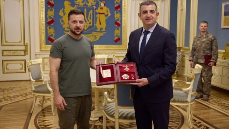 Президент Украины Владимир Зеленский вручил орден "За заслуги" I степени генеральному директору турецкой компании "Baykar" Халуку Байрактару.
